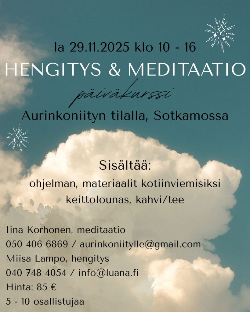 Mukaan: jumppamatto, lämmintä vaatetta (esim. fleece ja villasukat: tunnin aikana tulee varmasti hieman lämmin, mutta viimeistään loppurentoutuksen aikana voi tulla vilu)